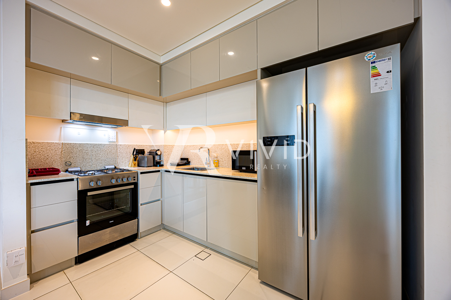 Residents enjoy access to a swimming pool, fully equipped gym, private beach access, high speed elevators, covered parking, 24/7 security, CCTV surveillance, and chiller free living.